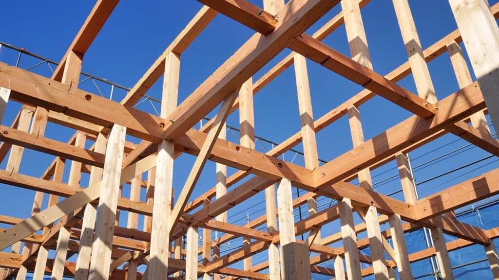 木造住宅の建築工事では、基礎の上に土台を組み、柱を立て、床を貼り、梁、屋根を掛け建物の躯体と呼ばれる構造材をくみ上げます。柱・梁・屋根等の家の骨組み部分をくみ上げる工程が完了する際に、最後に組み上げる木材が「棟木(むなぎ)」と呼ばれる名前のため、骨組みを最後まで作ることを「棟上げ(むねあげ)」と呼びます。「上棟」や「建前(たてまえ)」と呼んだりもします。