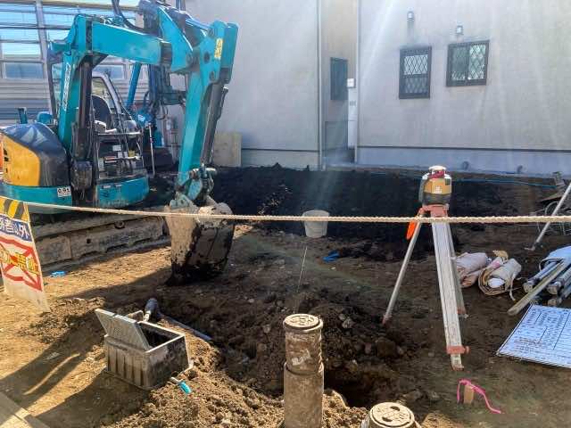 新築住宅・注文住宅の建築工事(基礎工事)に必要なもの重機と同じ程度の重機で作業を行うので、