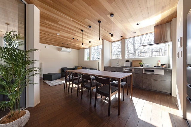 扉から入ったとき、ソファーに座ったときなど、あらゆる瞬間に開放感を感じることができるでしょう。