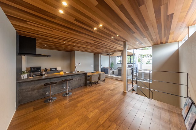 開口部を大きく設けても周囲からも見えづらいので、1Fリビングにつくるよりも一層プライベート感が強まりそうです。